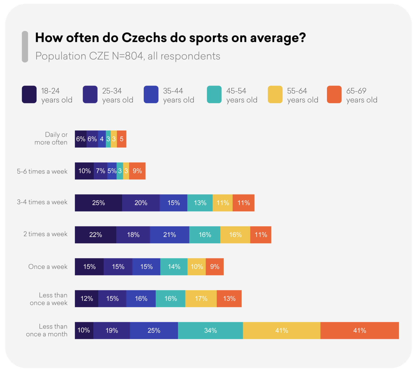 The MultiSport survey also shows that different factors prevent different generations from living a healthy lifestyle. While for adults up to middle age, that is 44 years, the biggest barrier is lack of time, for the generation over 55, the most common obstacles are health limitations and physical constraints. Younger generations encounter financial costs and lack of willpower more often. “In order to maintain a healthy population, the support from the state and employers is crucial. As the survey shows, lack of time or the financial cost of sports and other elements of a healthy lifestyle are often the obstacles for the working Czech people. It is therefore important not only to motivate employees but also to make sports accessible to them. Whether through employee benefits or company sports events,” comments Miroslav Rech.
