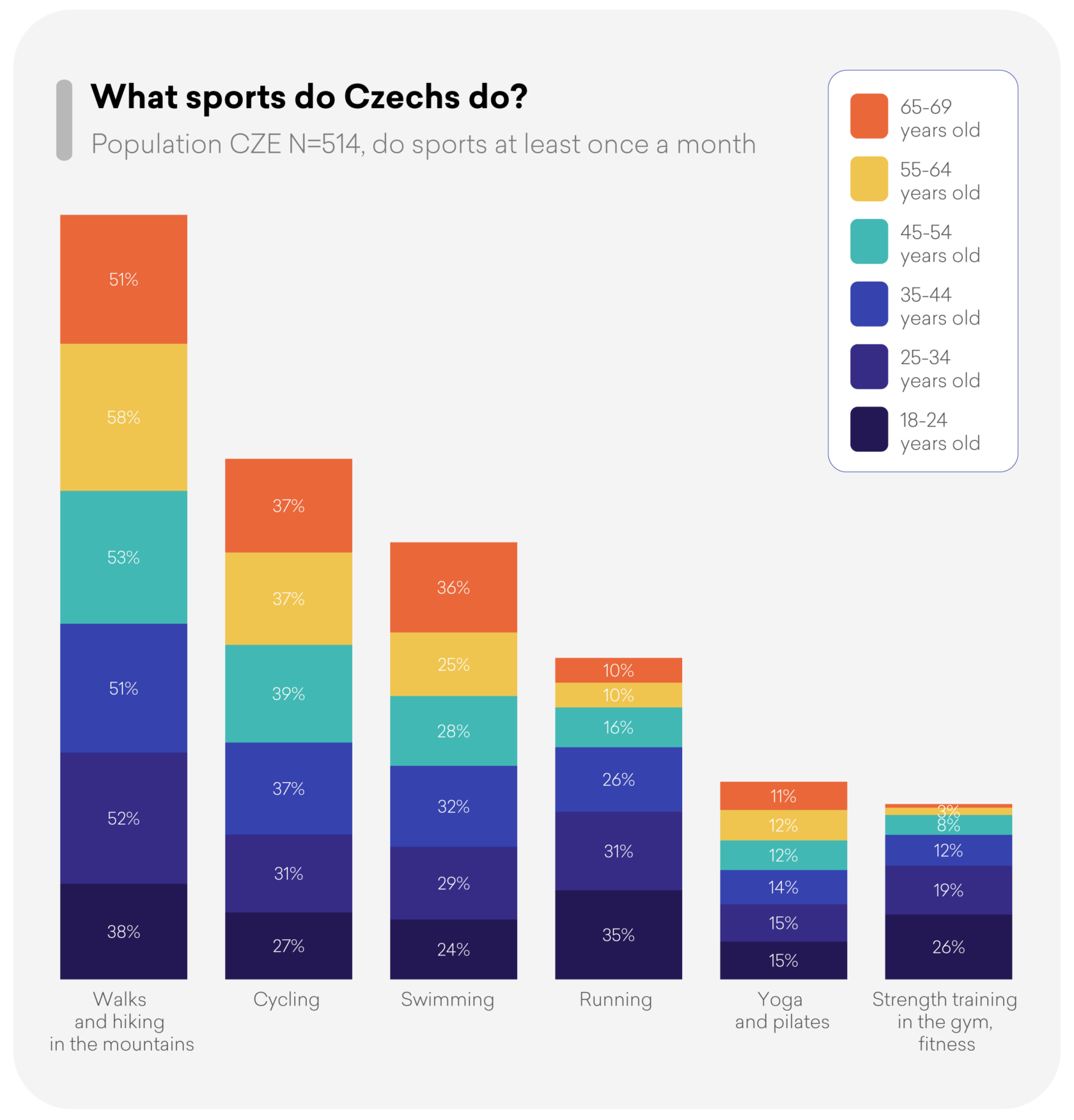 The motivation that leads Czechs to sport also differs between generations. The older they are, the more they include sport in their lives to feel good. Conversely, younger representatives are more motivated by the desire to look better or relieve stress through sport. Older generations also engage in sports more as a prevention of future diseases.