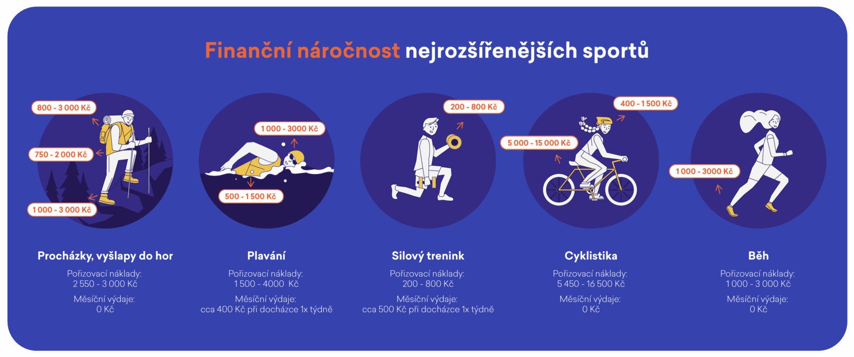 „Finanční náročnost jednotlivých pohybových aktivit samozřejmě vždy záleží na úrovni, na které se aktivitě chceme věnovat. Většina ze zmíněných aktivit má ale minimální pořizovací i měsíční náklady. Třeba běhat se dá v podstatě zadarmo a jedinou investicí jsou tak kvalitní boty. To je oproti pronájmu hřišť či výbavě na raketové sporty velmi nízký náklad,“ doplňuje Miroslav Rech.